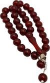 Tane Ölçüsü: 9 mm Küre Kesim Kırmızı Renk Toz Kehribar Tesbih