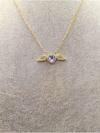 Uzunluk yaklaşık 40-45 cm ayarlanabilir altın renk mor kalp taşlı melek kanatlı model çelik kolye