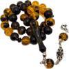 Tane Ölçüsü: 9 mm Küre Kesim Turuncu Siyah Renk Toz Kehribar Tesbih