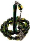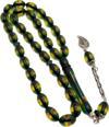 Tane Ölçüsü: 8 x 12 mm Beyzi Kesim Yeşil Sarı Sürmeli Model Toz Kehribar Tesbih