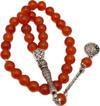 Tane Ölçüsü: 10 mm Küre Kesim Gümüş Renk İmame Püskül Kombinli Zar Turuncu Renk Doğal Cam Tesbih