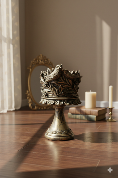 Zarif tasarımıyla dikkat çeken dekoratif polyester kuşlu ayaklı şamdan mumluk, evinizin atmosferini zenginleştirir.