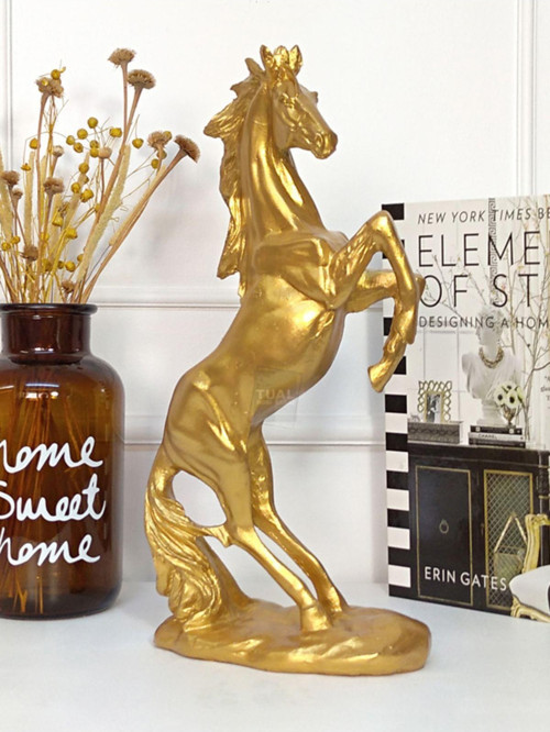 Dekoratif Şahlanan At Heykeli (34x17cm) Gold Dekoratif Şahlanan At Heykeli, birinci kalite polyesterden, kaliteli işçilikle, 3 boyutlu olarak özel makinalarda dökülmüş, avangarde ve klasik başta olmak üzere her tür dekorasyon trendine uygun olarak kullanılabilecek, hatasız, mükemmel detaylı, tok görünümlü polyester aksesuar objedir.
