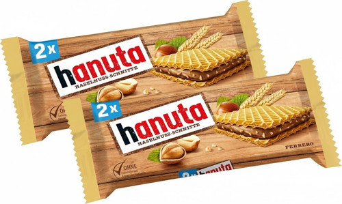 Gevrek, gevrek, fındıklı. Hanuta, iki çıtır buğday gofreti arasında taze kavrulmuş fındık ve aromatik kakaodan yapılan kremalı, meşhur fındık dilimidir. Bu bileşenler Hanuta'ya eşsiz fındıklı-tatlı ama biraz da bitter tadını verir.