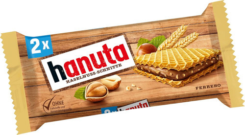Gevrek, gevrek, fındıklı. Hanuta, iki çıtır buğday gofreti arasında taze kavrulmuş fındık ve aromatik kakaodan yapılan kremalı, meşhur fındık dilimidir. Bu bileşenler Hanuta'ya eşsiz fındıklı-tatlı ama biraz da bitter tadını verir.