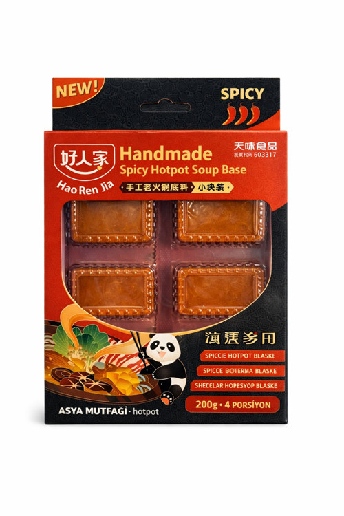 | Hao Ren Jia Handmade Spicy Hotpot Soup Base 200g – Acılı Hotpot Çorba Bazı (4 Porsiyon) |