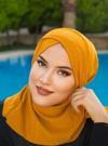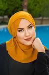 Aişe Tesettür Hardal Çapraz Bantlı Havuz ve Deniz Bonesi