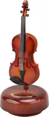 Zarif bir keman şekline sahip olan bu müzik kutusu, hem estetik bir görünüme sahiptir hem de hoş bir melodi sunar. Müzik kutusunun detaylı ahşap deseni, göz alıcı bir tasarım sunarken, dayanıklı plastik malzeme ona uzun ömürlü bir kullanım sağlar.
