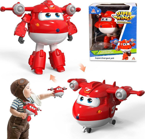 Şimdi süper şarjlı! Jett'in doğal yeteneği hızdır, bu nedenle süper şarjlı modda sadece hızlı değil, aynı zamanda ışık hızındadır! Çocuklar onu oyuncak bir uçaktan robota dönüştürebilir ve jett'i tek eliyle kaldırıp özgürce uçabilir.
