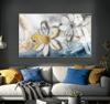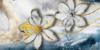 Gri - Lacivert - Gold Çiçek Desenli Model Çerçeveli Temperli Cam Tablo Tekli Yatay