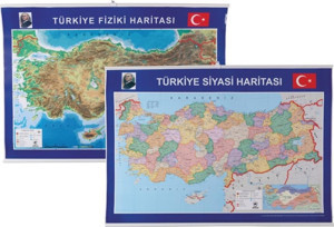 Mep Medya -Türkiye Siyasi-Türkiye Fiziki Çift Taraflı(Duvar Haritası) 50x35cm