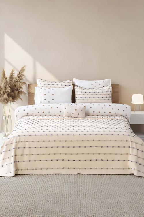 Harmony Krem Çift Kişilik Yatak Örtüsü Seti - 4 Parça Çeyiz Seti