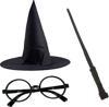 Harry Potter Siyah Şapkası Harry Potter Gözlüğü Harry Potter Asası 3 Lü Set