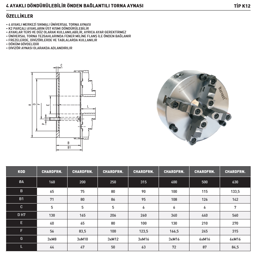 Harvest 200x4 Döndürülebilir Önden Bağlantılı Torna Aynası