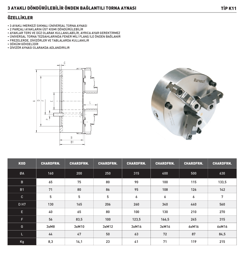Harvest 630x3 Döndürülebilir Önden Bağlantılı Torna Aynası K11