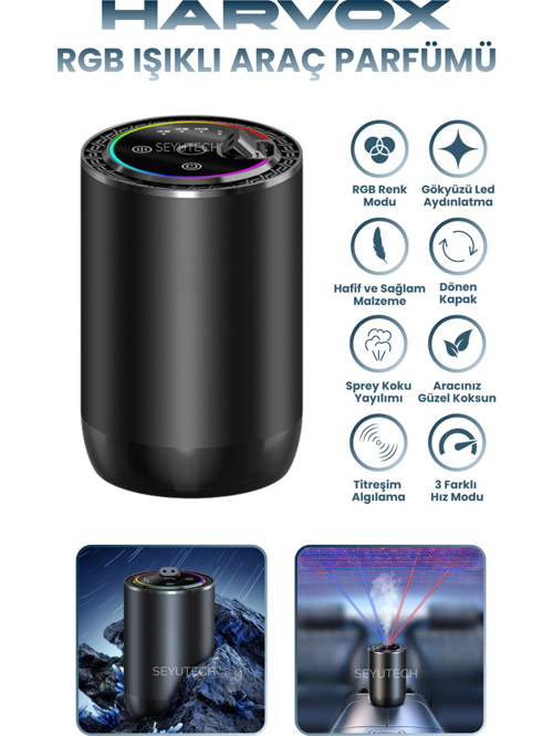 Harvox Rgb Işıklı Araç Parfümü 3 Farklı Mod Yıldız Efektli Ortam ve Oda Hava Nemlendirici Aromaterapi