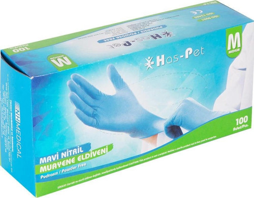 Dayanıklı ve Konforlu: Has-Pet SK006543, mavi nitril malzemeden üretilmiş, pudrasız muayene eldivenidir. Orta (Medium) beden seçeneği ile elle uyumlu ve rahat kullanım sağlar.