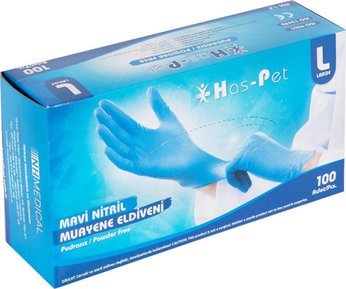 Has-Pet SK006544 Mavi Nitril Pudrasız Muayene Eldiveni L/Large Beden