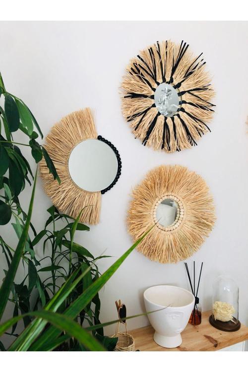 - Hasır ayna, doğal dokusuyla mekanınıza sıcak ve samimi bir atmosfer yaratır