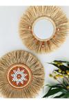 Hasır Dükkanı El Yapımı Rafya Duvar Süsü Rafya Ayna Dekoratif Ayna Balkon Mobilyası Duvar Rafı Kahve Köşesi