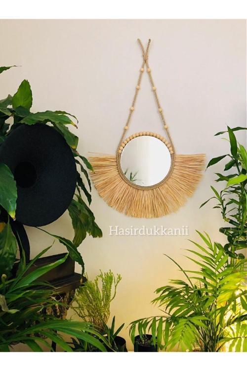 Doğal muz lifi rafya ile üretilmiştir Ayna çapı 18 cm Toplam çap 40 cm