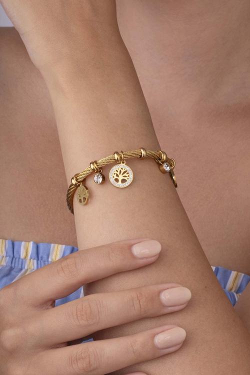 Gümüş Pazarım Hasır Model Hayat Ağacı Figürlü Altın Kaplama Çelik Kadın Charm Bileklik