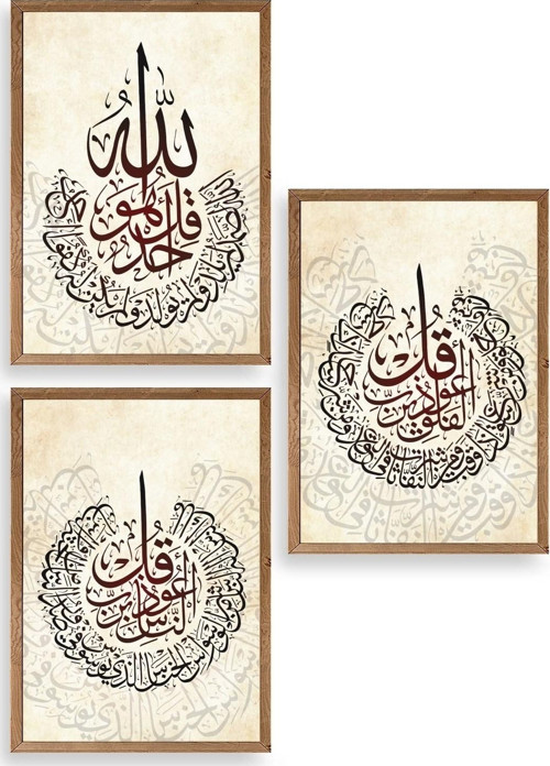 Hat Sanatı Üçlü Ahşap Çerçeveli Tablo
