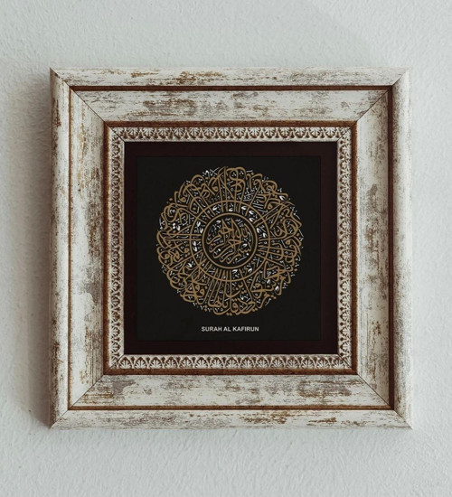 CVC WOOD Hat Yazılı Kafirun Suresi Çerçeveli Taş Tablo , Çerçeveli Taş Duvar Dekoru