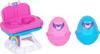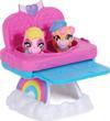 - Bu oyun setinde iki karakterli iki renkli Hatchimals yumurtası, bir biberon, iki emzik ve gökkuşağı bulutu temalı bir mama sandalyesi bulunur.