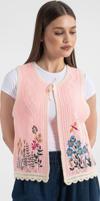 Hatun Atila Hatunatila Desenli Süzine Örgü Triko Yelek Açık Pembe