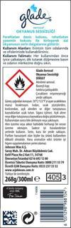 Glade Aerosol'ü günlük olarak veya rutin ev temizliğinin ardından evinizin havasını ferahlatmak için kullanın. Her kullanımdan önce iyice çalkalayın dik tutarak düğmesine basın ve odanın merkezine doğru sıkın. Evinizin tüm odalarında ve ofisinizde kullanabilirsiniz.