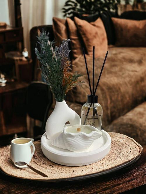 Havalı Tasarım Beyaz Renk Özel Tasarım Soft Oda Kokulu Ve Deniz Kabuğu Mum N Model Vazolu Standlı Aksesuar Seti