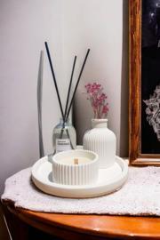 Havalı Tasarım Dekoratif Mini Vazo Fresh Soft Oda Kokusu Dekoratif Mum Yuvarlak Stantlı Set