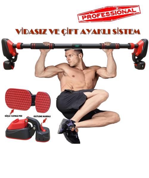 Yeni nesil Vidasız ve Çift Ayaklı Sistem ile kapı ya da duvar aralığında güçlü kavrama sağlayan bu barfiks aleti,