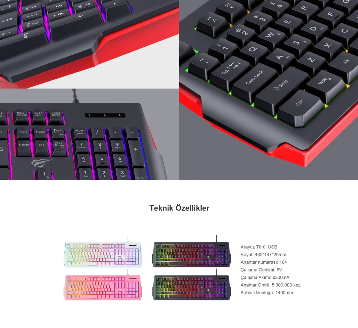 Havit GameNote KB866L Kablolu RGB Oyuncu Klavye – F Klavye