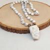 Havlit Taşı Düğümlü Unisex Tasarım Kolye 8mm (45045) Ortalama uzunluğu 52-55cm aralığıdır Kolyenin ortasında ham parça havlit taşı kullanılmıştır. Sabit klipslidir kolayca çıkarılıp takılır. Farklı taş ve ölçü talepleriniz için istekte bulunabilirsiniz.