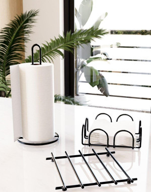 Bino Servis Sunum Seti Havluluk Peçetelik Nihale Paslanmaz Çelik Mat Siyah Metal 3 Lü Mutfak Seti