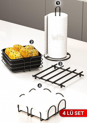 Bino Sofra Mutfak Sunumluk Rulo Peçetelik Havluluk Nihale Ekmeklik 4Lü Sofra Seti Mutfak Düzenleyici