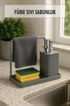 Ürün Hikayesi: Füme tonuyla banyonuza modern bir hava katan bu sıvı sabunluk, entegre havluluk aparatıyla günlük kullanımda pratiklik sağlar. Minimalist tasarımı ile dekoratif ve işlevsel bir üründür.