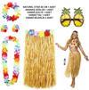 Hawaii Parti Kostüm Seti - 60 Cm Hasır Etek, çiçekli Aksesuarlar Ve Ananas Gözlük