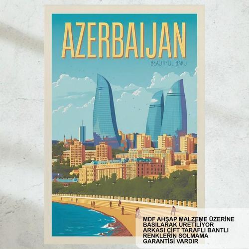 Hayat Poster Azerbeycan Bakü Dünya Gezi Şehirleri Turistik İllüstrasyonu Ev Dekorasyon Tablo Retro Ahşap Poster