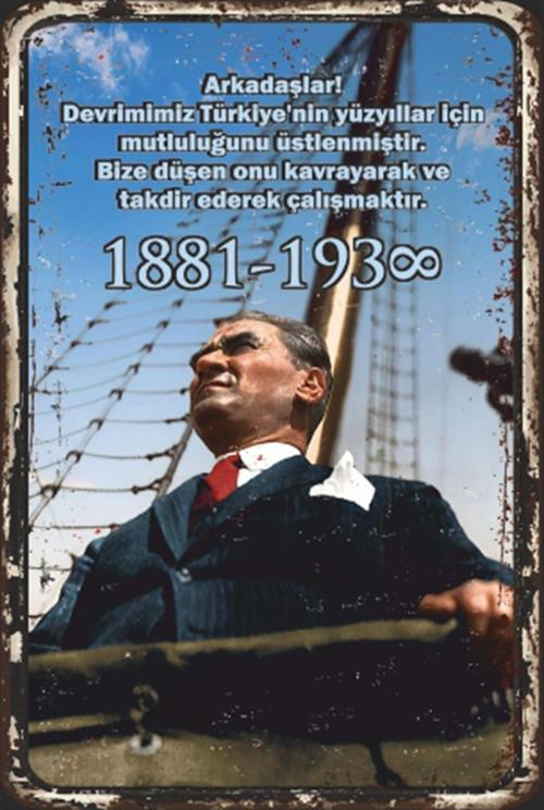 Hayat Poster Mustafa Kemal Atatürk Gemide Retro Ahşap Poster