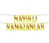 Hayırlı Ramazanlar Metalize Harf Banner ile Ramazan Dekorasyonuna Hareket Katın Hayırlı Ramazanlar metalize harf banner dekorasyonlarınızda dilediğiniz gibi kullanacağınız ürünler arasında yer alır. Özel olarak hazırlanan tasarım Ramazan için hazırlanacak dekorasyonlara farklı bir hava katmak için tercih edilebilir. Hayırlı Ramazanlar Metalize Harf Banner Özellikleri ; Ölçü: 3.5 mt. Tek harf uzunluk: yaklaşık 24 cm Hayırlı Ramazanlar Metalize Harf Banner Fotoğraftaki Gibi Mi Gelecek? Hayırlı Ramazanlar metalize harf banner modelimiz de diğer tüm ürünlerimiz gibi fotoğraftaki görüntünün aynısıdır. Fotoğrafların tümü kendi stüdyolarımızda çekilmekte olup, flaş kaynaklı küçük ton farklılıkları dışında birebir aynı üründür.
