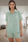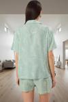 Şıklığı ve konforu bir araya getiren bu yeşil hayvan desenli pijama takımı ile yaz gecelerine hazır olun! %100 viskozdan üretilen yumuşak ve nefes alan Shally dokuma kumaşı, cildinizde serin ve rahat bir his bırakacaktır. Gömlek yakası ve kısa kollarıyla şık ve rahat bir görünüm sunar. Rahat regular kalıbı sayesinde gün boyu konforlu bir kullanım deneyimi yaşarsınız. Evde dinlenirken, kitap okurken veya film izlerken rahatlıkla kullanabilirsiniz.