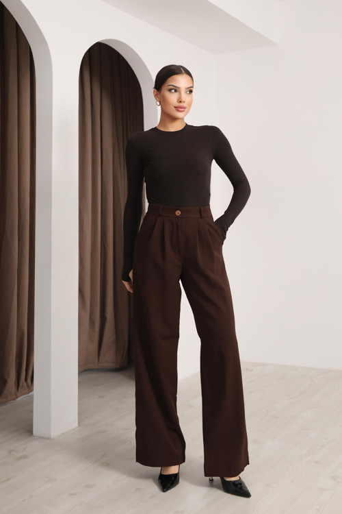 Kadın Kahverengi Yüksek Bel Palazzo Pantolon