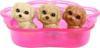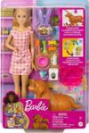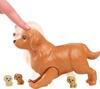 Sürpriz! ®'nin sevimli köpeğinin yavruları olacak! Çocuklar, ® eşliğinde anne köpeğin sırtına bastırarak üç sevimli yavru köpeğin doğmasına yardımcı olabilir. Yavru köpekler doğduktan sonra çocuklar, küveti soğuk suyla doldurabilir, küvete batırdıkları ıslak havluyla yavru köpekleri silip her birinin taşıdığı özel doğum lekesini açığa çıkarabilir. ®, bükülebilen dizleri sayesinde yeni minik dostlarının dünyaya gelmesine yardımcı olur. Üç yavru köpeğin sığabileceği sevimli taşıma çantası sayesinde ise yavrularla ilgilenmeyi dilediği her yerde sürdürebilir. Hikaye anlatımına uygun diğer aksesuarlar arasında bir şişe, iki fırça, köpek oyun ipi, iki ödül yiyeceği, bir kutu köpek maması ve mama kabı yer alır. Çok sayıda köpek besleme aksesuarı ve hikaye anlatma seçeneğiyle bu oyun seti, özellikle hayvanları seven 3-7 yaş arası çocuklar için harika bir hediyedir. Bebek tek başına ayakta duramaz. Renkler ve süslemeler çeşitlilik gösterebilir.
