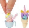 Çocuklar, gerçeğe uygun dondurmalar hazırlamak için pembe ve mavi renkli iki çeşit oyun hamurunu dondurma makinesine yerleştirip kolu çekebilir, ardından dondurmaların döne döne külaha dolmasını bekleyip ikram etmeden önce üstlerini süsleyebilir.