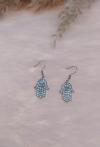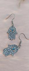 Otantik Swarovski Taşlı Sallantılı Hamsa Figürlü KüpeBeyaz
