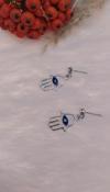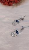 Otantik Swarovski Taşlı Sallantılı Hamsa Figürlü KüpeBeyaz