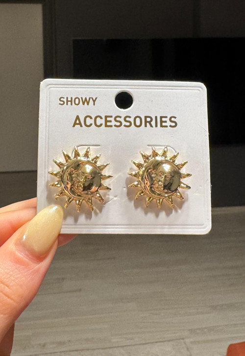- Zarif tasarımıyla dikkat çeken bu kadın gold güneş küpeler, şıklığınızı tamamlar. - Yüksek kaliteli malzemeden üretilmiş olup, uzun süreli kullanım için dayanıklılık sunar. - Her türlü kıyafetle uyum sağlayacak şekilde tasarlanmıştır günlük giyimden özel davetlere kadar geniş bir kullanım alanı mevcuttur. - Kolay temizlenebilir yapısı sayesinde pratik bir bakım imkanı sağlar ve parlaklığını korumasına yardımcı olur.